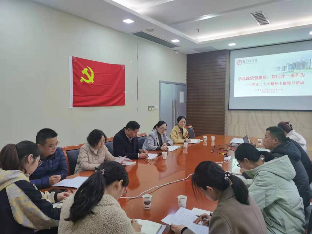 按照学校党委关于认真学习宣传贯彻党的二十大精神相关要求,11月29日下午,纪委机关审计处联合党支部开展“学思践悟强素质 知行合一勇作为”主题党日活动,全体党员集中学习党的二十大精神,青年骨干立足岗位实际,交流工作经验,探讨学习心得。